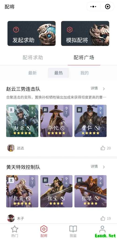 03【配将模拟 阵容交流】 主公们通过【配将】版块的发起求助,即可读取游戏内玩家自己的武将和武技拥有情况,从而向其他主公发起最适合自己的配将求助,并从其他玩家的配将方案中选择最适合自己的配将方式,提升阵容实力。