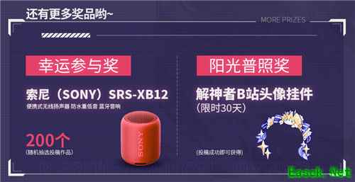 除了上述的三大“实力”奖项,《解神者》还贴心的给参与的玩家准备了幸运参与奖和阳光普照奖。200份索尼蓝牙音响,从所有投稿的玩家中随机抽奖,每个人的中奖几率都一样。而阳光普照奖所有投稿成功的人均可以获得,超萌超可爱的解神者专属B站头像挂件。