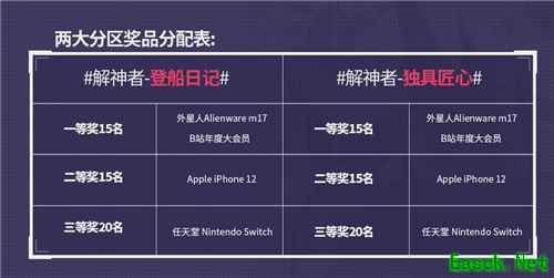 #感恩有你# 视频征集活动的百万奖励包括一等奖30台外星人笔记本,二等奖30台新出的Apple iPhone12,三等奖40台任天堂Nintendo Switch。三大奖品均平分到#解神者-登船日记# #解神者-独具匠心#两大分区。干货满满的游戏攻略、咨兽主搭配建议,又或者是展现个人创作能力的MMD、手书等内容,都可选择对应分区参与活动。 单看着奖品数量及质量可以说比一般的活动奖品都给力,毕竟往常游戏圈的惯用手法是“奖金不够道具来凑”,像这种全是实物奖励真的很实诚了,懂的都懂。