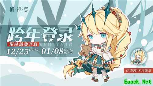 【神祈新愿】限时活动 (一)跨年签到活动 活动时间:2020年12月25日更新后-1月8日4:59 活动期间内,签到10日即可领取全部签到奖励,包含「初雪伴星」徽章、光辉等丰富好礼! (二)炼金兑换活动 活动时间:2020年12月25日更新后-1月4日4:59 活动期间内,使用指定道具即可兑换许愿币*10、皮肤券等丰厚奖励!