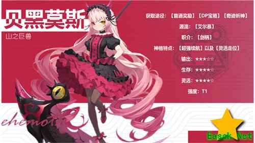 【被动技能】黑暗恶魔Lv.1 无CD 造成伤害时,回复相当于伤害值1%的生命值。 食用Tips: 贝贝因本身的续航能力极佳,兽主选择时可以搭配输出套装增加输出。位移技能3次后会有冷却时间,普攻+位移技能交替使用可在游走过程中增加输出,注意伤害技能使用过程中可以移动躲避怪的技能。贝贝适合的防御兽主和工具人兽主。 三、配套介绍 兽主推荐