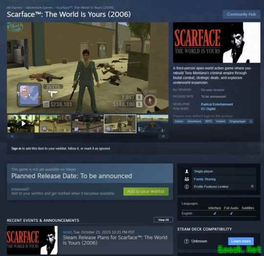 近日,基于1983年电影《疤面煞星》改编的2006年经典游戏《疤面煞星:掌握世界》在Steam和Epic游戏商店的重新发行计划遭遇了一系列意外,导致发行过程混乱,最终被暂时下架。 发行商EC Digital Entertainment原计划将该游戏重新推向PC平台。然而,本周三该游戏在Epic游戏商店意外提前上架,随后又被迅速下架。发行商解释称,这是由于一个“技术问题”导致游戏“非计划地提前发布”。 此外,发行商在Steam页面上曾注明,此再发行版本“使用了AI辅助技术来改进某些视觉元素,同时保留核心体验”,并且使用AI增强功能是完全可选的。 面对这一系列问题,EC Digital Entertainment在Steam论坛上发布了致歉声明,承认此次发行“完全是我们责任”。声明中提到,由于“意外的发布导致了复杂的状况和担忧”,经过紧急讨论,他们认为“暂时隐藏商店页面是最合适的步骤”,并已开始与平台方协调下架事宜。发行商为给社区带来的困惑和担忧道歉,并表示如果未来情况变化,能够重新启动项目,会及时通知玩家。 《疤面煞星:掌握世界》最初于2006年在PlayStation 2、Windows PC和Xbox平台发行,2007年推出了Wii版。这是一款类似《侠盗猎车手》的开放世界动作冒险游戏,由曾开发《辛普森:横冲直撞》和《虐杀原形》系列的Radiation Entertainment制作。 据悉,一款设定在拉斯维加斯的游戏续作曾一度开发,但最终被取消。 |