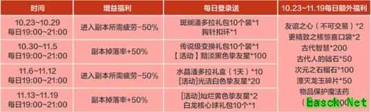 黑暗瑰光特武 新服中当然也有一系列专属福利活动,连续四周,每周不同BUFF增益,副本疲劳减半或掉率增加,还有每天轻松登录送,满满福利不要错过。