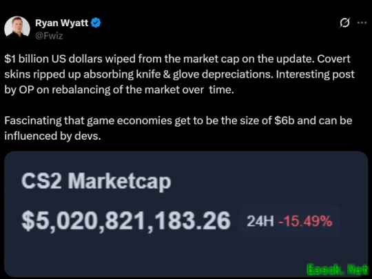 Valve旗下人气射击游戏《反恐精英2》(以下简称CS2)在最新更新发布后,其游戏皮肤市场价值出现大幅下跌。根据第三方数据网站Price Empire的统计,CS2的整体皮肤交易市值已下降约30%,损失接近20亿美元。