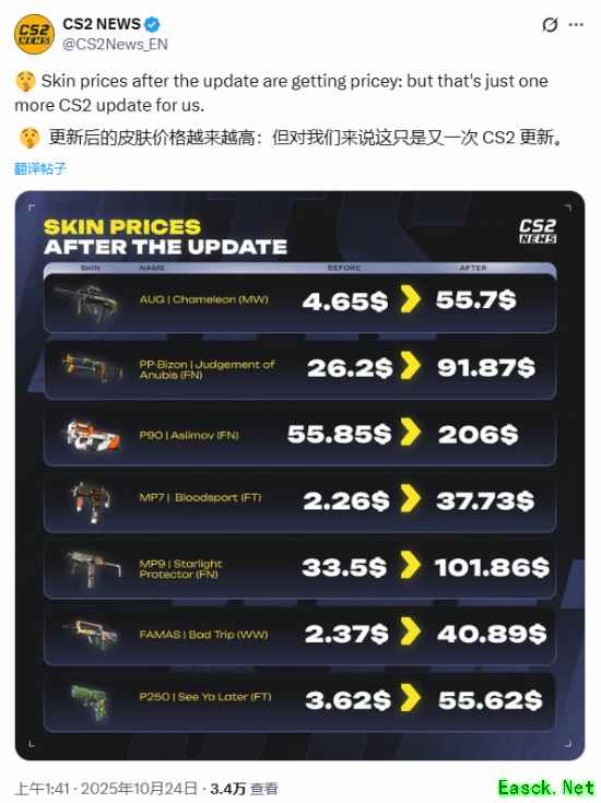 《CS2》改市场机制后部分红皮肤价格暴涨!涨幅惊人