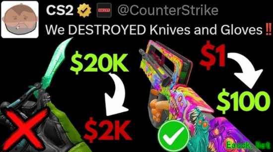 《反恐精英2》近日推出重大更新,扩展了汰换合同系统。玩家如今可以通过使用5件隐秘级皮肤,合成出一把稀有刀具或手套——这一功能在游戏历史上尚属首次。 这一更新迅速在玩家圈掀起轩然大波,也让整个CS饰品市场陷入剧烈震荡。由于高端皮肤供应量骤增,市场价格出现断崖式下跌。据第三方统计平台估算,全球CS饰品总市值在短时间内蒸发近20亿美元。过去动辄数万元人民币的手套、刀具类皮肤,价格被“腰斩”甚至更惨。