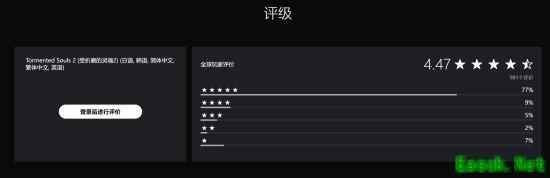 截至目前撰文,《受折磨的灵魂2》在PS商店取得了4.47分的高分评价,游戏共收录981个玩家评价,给出五星满分的玩家占比77%,而给出四星的玩家占比高达9%,也就是说,超过八成的玩家为本作打出了好评。