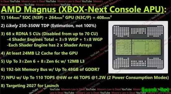 不过,Xbox Magnus预计将是一款PC-主机混合型设备,不同于我们熟悉的家用主机,售价或将超过1000美元。据最新爆料,尽管价格高昂,微软似乎仍以亏本方式销售。 油管知名科技频道Moore’s Law is Dead最近披露了Magnus所用芯片的完整规格,结合所有成本计算,价格可能超过1200美元,正如AMD内部人士Kepler此前所透露。