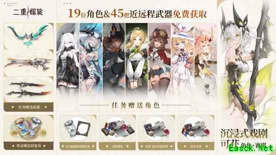 在前不久的8月26日,《二重螺旋》在公测定档直播中正式宣布取消角色武器抽卡、移除体力系统、商业化重点调整至外观付费等超预期改动,在短时间内吸引到了大量玩家关注与讨论,并对产品的公测表示强烈的期待。对市场和玩家而言,这既是首款官宣全角色&武器免费(无角色武器卡池)的大体量3d二游,同时也是2025年大作空窗期中,玩家可最快体验到公测实机的“无角色武器卡池”产品。 公测前瞻首先对公测版本内容进行了整体介绍,在《二重螺旋》公测版本中,将开放4章主线剧情,以及实装包括自机角色在内的19位角色、45把近远程武器,角色与武器均可通过游戏内的委托密函系统免费获取,或在商店中直接购买。其中,包括贝蕾妮卡、丽蓓卡、松露与榛子在内七个角色还将通过任务流程、邮件赠送、活动在内的多种渠道进行赠送,极大程度确保玩家游戏前期的游玩体验与意愿。