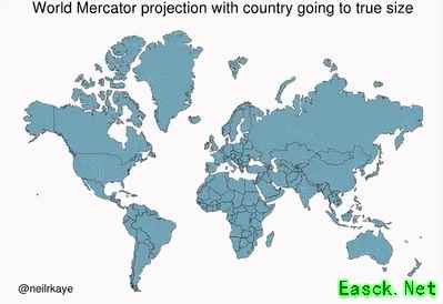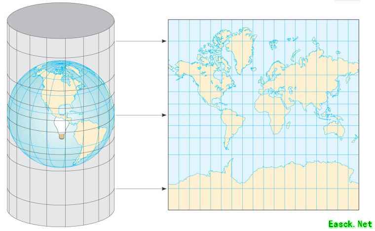 墨卡托投影即在地球中心点亮一盏灯,将地球4大洋7大洲“投影”到圆柱侧面上,再把圆柱侧面展开,就是成功的将球面展开成平面。 航海者借助墨卡托投影绘制的海图,终于可以上用直线导航了!因为地球是个球形,过去的海图比如波特兰型海图都未考虑曲率,所以一旦航行距离稍远,直线导航的终点就会和目的地有较大的偏差。 我们今天看到的绝大部分世界地图,都是采用的墨卡托投影。当然这种世界地图也有很大的缺陷,就是地图地形和真是地形大小会有较大的差距,越靠近两极的地区,在地图上呈现出来的面积就越来。