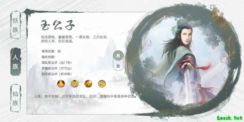 【人族】血厚控制型:人乃万物之灵,是各种族中最聪明的,最懂得发挥自己的本领,攻击和防御都比较平衡,许多玄门法术可以使对手陷入各种异常状态,消减对手的能力,可让对手求生不得求死不能。
