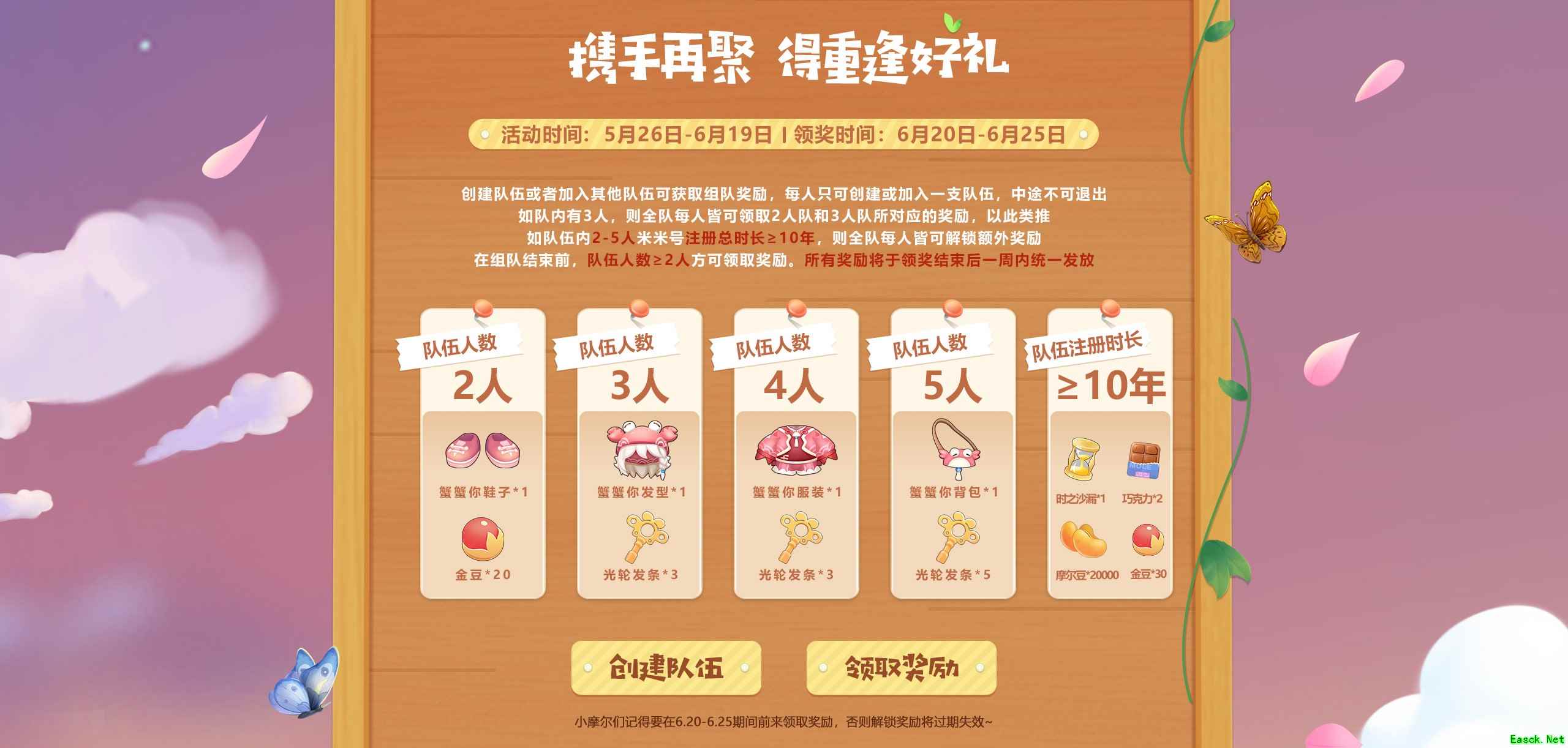 小摩尔们还记得与好友们在庄园里一同玩耍时的快乐心情吗?这样的美好回忆不会消失!本次回归活动期间,创建或加入队伍即可领取相对应的奖励,集齐五人小队且满足10年以上的队伍注册时长要求,即可领取游戏内活动专属“蟹蟹你”系列装扮,快拉上昔日好友一同前来参加吧! 每日抽奖 赢精美周边