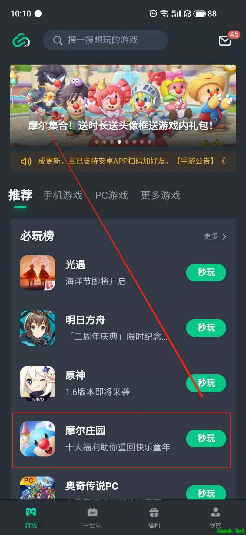 网易云游戏作为网易官方出品的云游戏平台,它最大的亮点是通过云端运行游戏,玩家只需要打开手机浏览器,就能登录网易云游戏平台,轻松畅玩《摩尔庄园》。由于游戏所有的运行都在云端进行,在游玩时无需下载游戏,对于手机的配置要求也极低,不论手机的配置如何,都可以完美运行《摩尔庄园》。只需打开手机浏览器点击秒玩,就可以一秒进入游戏,安卓用户还能下载网易云游戏APP,使登录更加便捷。 对于有些追求大屏游戏的玩家,想要在电脑上游玩《摩尔庄园》,也可以轻松做到,只需打开电脑浏览器,进入网易云游戏,就可以立即享受大屏游戏带来的愉快体验。 如何通过网易云游戏玩《摩尔庄园》: 第一步:手机或电脑浏览器打开网易云游戏的官网 第二步:找到《摩尔庄园》并点击“秒玩” 第三步:登录后就可以进入游戏 具体图示如下: PC端:
