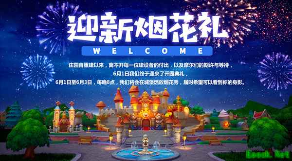 【活动六】:开园庆典烟花秀 为庆祝《摩尔庄园》手游开园,公民管理处将每晚在城堡开展烟花秀,邀请各位小摩尔来赏烟花。 【活动内容】:活动期间,小摩尔们每天晚上可以前往城堡观看迎新烟花秀,燃放烟花后可拾取掉落的限定道具“满天星花”、“开园礼炮”。使用活动道具“满天星花”,前往烟花会兑换界面即可兑换可用于兑换秋千等奖励哦。 【活动时间】: 燃放烟花时间:6月1日-6月3日,每晚20:00-20:03; 满天星花掉落时间:6月1日-6月3日,每晚20:04-21:04; 兑换奖励时间:6月1日5:00 -6月3日24:00