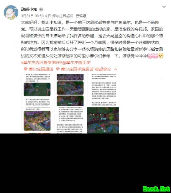 (摩尔抖音达人:郑文熙) 注:各平台详细的参与规则将在手游上线后同步公告,敬请期待。 总之, 我们欢迎在绘画,音乐,剪辑,手工等方面有一技之长的小摩尔, 也同样欢迎那些一直关注手游成长,热爱摩尔庄园这个IP并愿意一直陪伴它走下去的小摩尔。 这项计划,主要是想要发掘更多和游戏相关的优秀作品,并找到一群愿意长期宣传摩尔庄园的创作者,我们一起齐心协力,让摩尔庄园手游能够发展得越来越好! 第一轮征集活动将在六月一日上线,届时我们会再通知大家。 期待看到各位小摩尔分享的作品~ 所以,大胆创作吧,尽情表达关于庄园的奇思妙想! 也许,下一个明星摩尔,就是你! |
