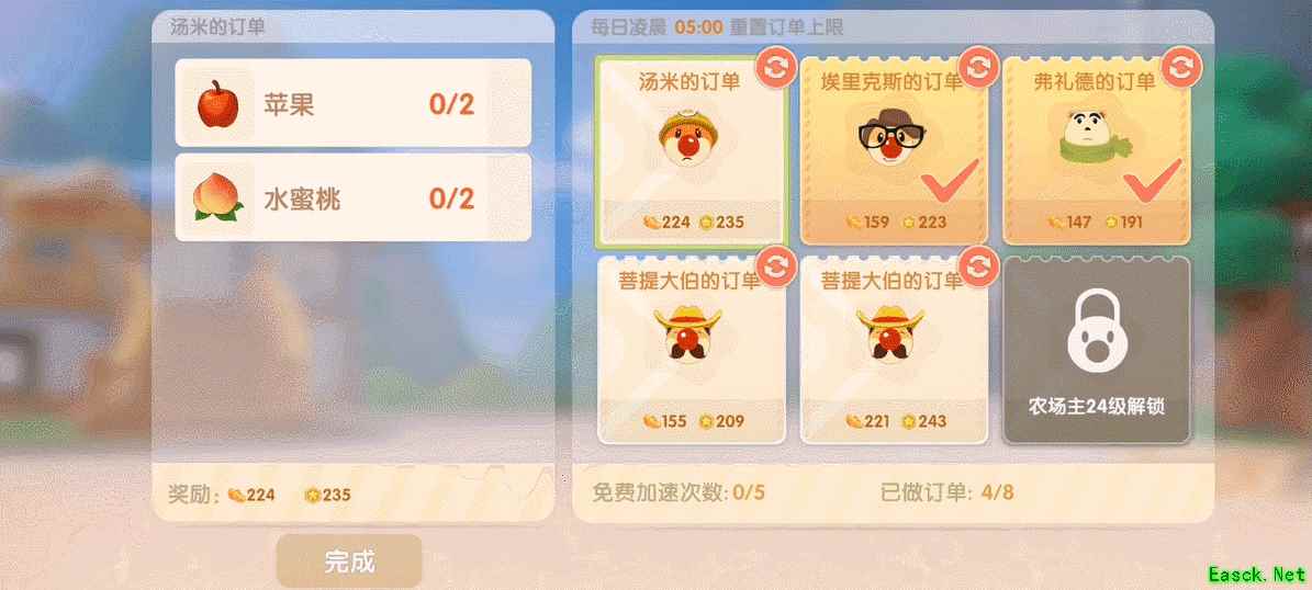 像瓜果,蔬菜和鱼类都是非常重要的食材,玩家可以通过浇水施肥来加快作物成长。 这些农作物不仅可以完成庄园居民的订单获得收益,也可以卖给花婶,还可以作为食材去餐厅做菜。总之,好好种田是会有很多回报的!