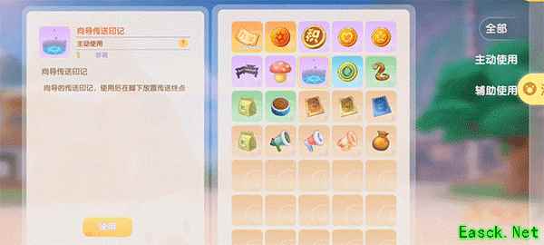 另一个功能就非常有趣了,向导平时帮人指路要跑来跑去,过程有点浪费时间。因此,向导可以使用传送功能。具体操作如下: 第一步:需要成为向导,背包会出现传送印记。 第二步:选择一个地点使用传送印记,传送印记会出现在玩家脚下,这个就是目标点。