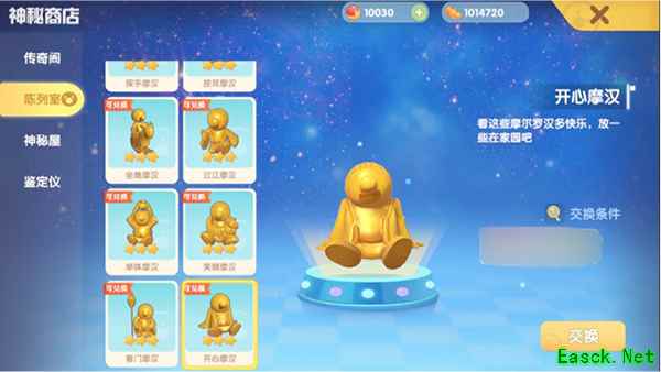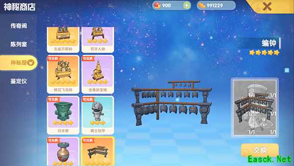 神秘屋: 神秘屋的商品可就高级了,全是古董级别的藏品!有珐琅,编钟,四羊鼎,还有各式各样的摩像青铜器等。无论买到那个都价值连城,分量十足啊。如果能够收集齐全套,家园变身博物馆不在话下。 兑换条件:需要集齐拼图碎片兑换,有的宝物需要六块,有的宝物需要四块。碎片会通过日常活动随机掉落,比如说钓鱼,砍树等。