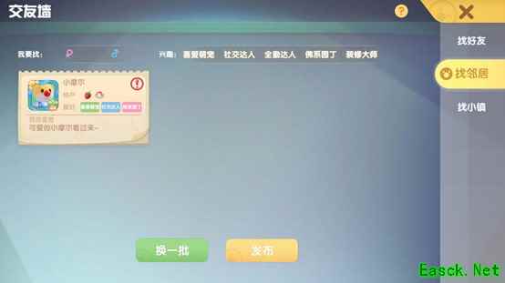 在此基础上,《摩尔庄园手游》推出了交友墙系统作为补充,为单个玩家开展社交提供了便利。