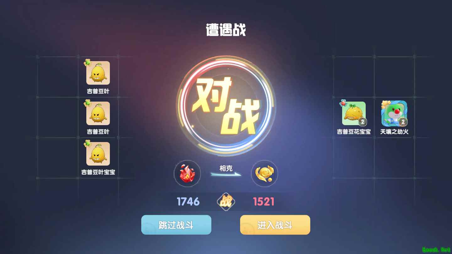 在开始战斗之前可以在确认界面看到双方的战力情况以及属性相克的具体情况。战斗力比对方高的情况下我们可以选择跳过战斗直接获取经验和素材,不过这样就不能捕捉精灵了。这个需要注意。
