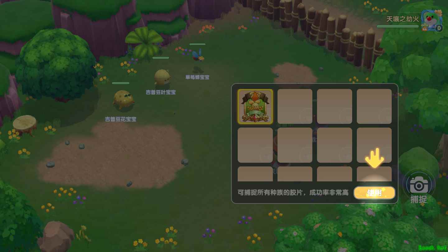 战斗中我们可以用对应种族的胶片去捕捉精灵,捕捉的成功率取决于胶片的种类、精灵的等级和其当前血量。精灵分为2种,野生精灵和精灵宝宝,一般来说我们需要抓捕的是精灵宝宝,因为精灵宝宝具有比野生精灵更优秀的成长率而且初始等级为1级。