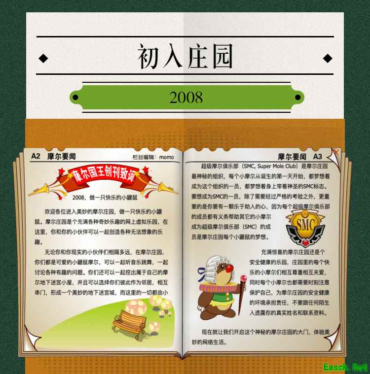 在这一年,摩尔庄园诞生了。在这里,大家都是可爱的红鼻子鼹鼠小摩尔,可以一起勤劳耕作,一起高山滑雪......我们都是摩尔庄园的建设者。