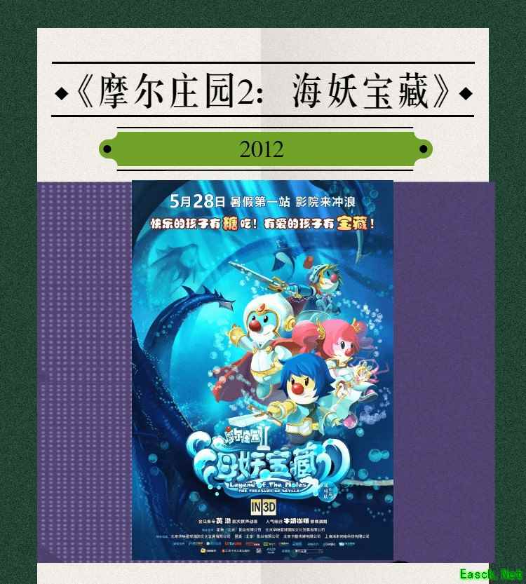 2012年,又一部摩尔大电影上线,这是一个带着勇敢、热爱和平的小摩尔们一起去海底探险,拯救美丽的摩尔庄园的故事。