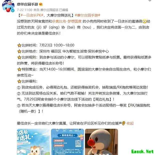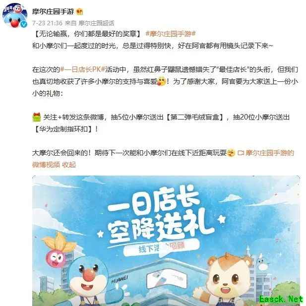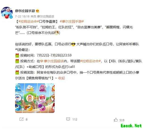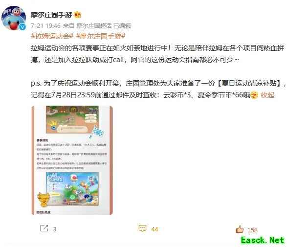 2.近期庄园福利 庄园最近也有很多可以参与的活动,除了运动会口号征集赢奖励之外,还有超多福利!贴心的庄园已经为大家整理好了: 家摩们快来官方微博看看吧!