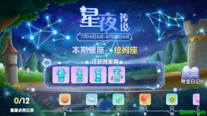 2、拉姆座流星雨造访庄园 7月14日5点-8月4日4点,拉姆座流星雨代替双摩座流星雨造访庄园,星夜传说全新画册待你点亮!