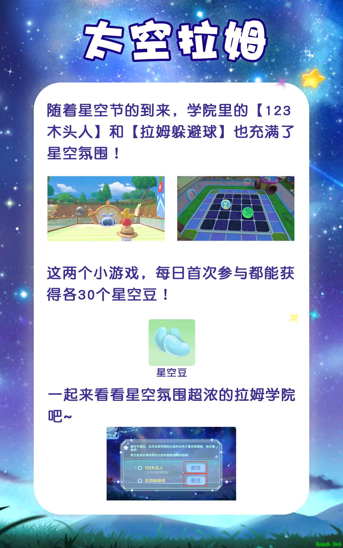 2.璀璨星空节狂欢盛典 上周四庄园迎来了星空节庆典活动,可爱的星空生物、具有星空特色的拉姆学院、土伯伯藏在庄园里的星空礼物、唯美的紫色流星雨都在庄园里~ 庄园为大家整理了一份超详细的活动攻略,继续欢庆璀璨星空节吧!