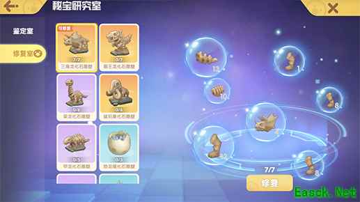 迷雾沼泽中寻得的化石还可以在集市进行摆摊出售。通过秘宝研究室鉴定为真的化石碎片,并集齐修复后还可以放置在家园中作为家具装饰。
