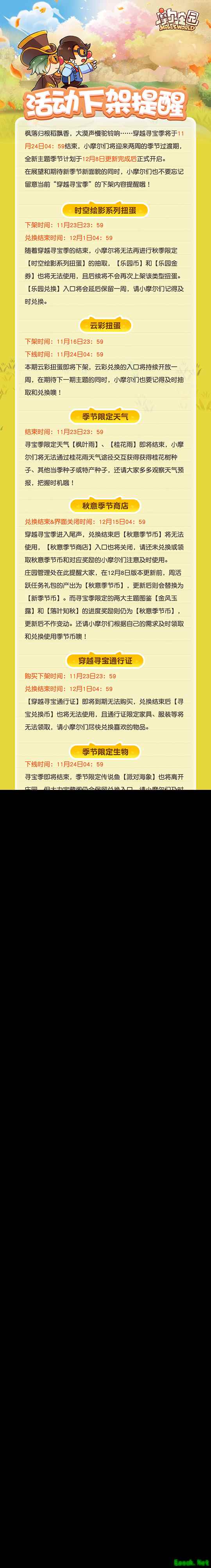 来势汹汹的沙尘暴打乱了庄园的季节变换,我们的探险旅程也只能因此暂缓。 不过洛克行政官已指派先遣队前往探寻原因,庄园管理也整理了近期活动的下架情况。让我们养精蓄锐一番,再以更好的面貌迎接沙尘背后的奇妙旅程! 不说了,快码住这张长图避免错过!