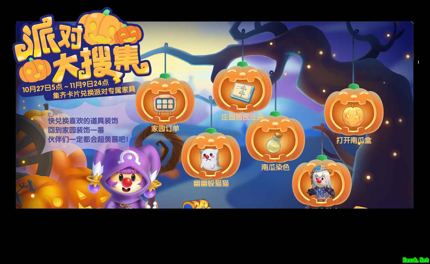 每天只有5次制作机会哦~ 活动四:派对大搜集 上述三个活动获得的派对卡片有什么用?这可是兑换全新活动家具的好东西! 活动时间:10月27日更新后-11月9日23:59 活动奖励:活动家具