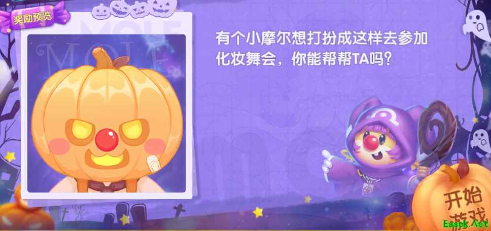 活动一:奇幻变装夜 活动时间:10月27日更新后-11月2日23:59 活动奖励:派对卡片 听说小摩尔们都是变装高手,想要参与派对的庄园居民特意前来求助! 活动前六天每天都能接收到一个居民的求助信息,小摩尔们需要记住居民们提供的妆容参考图,然后在打乱的妆容部件中,找到符合的部件,尽可能还原妆容。