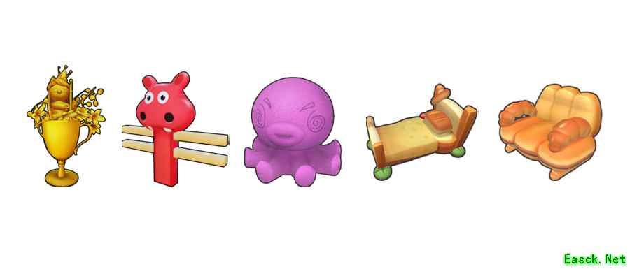 【活动奖励】 钓鱼之王奖杯、红色河马栅栏、紫色章鱼、面包单人床、夹心面包椅等