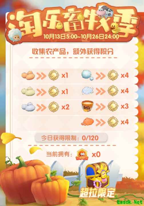 累计投票达到一定次数,还可以领取我们为大家准备的投票奖励,投票结束之后排名前两名的服装将会获得在之后返场和大家再次见面的机会! 各位潮流评审,请务必用好你们手中的每一票哦~ 活动三:淘乐畜牧季 【活动时间】 10月13日更新后-10月26日23:59