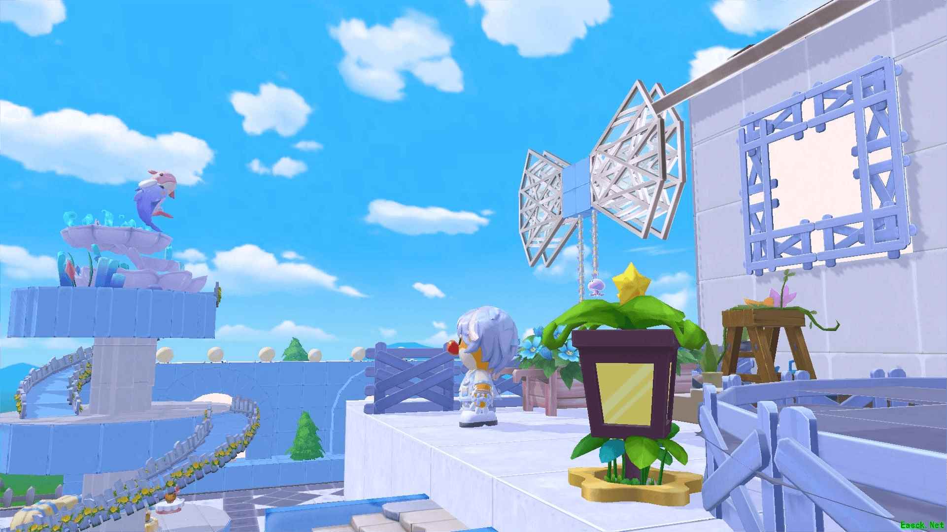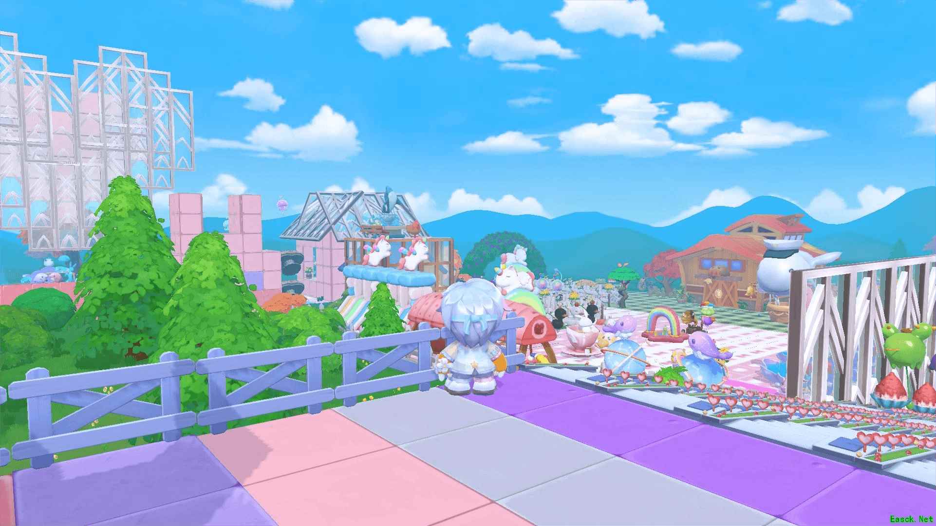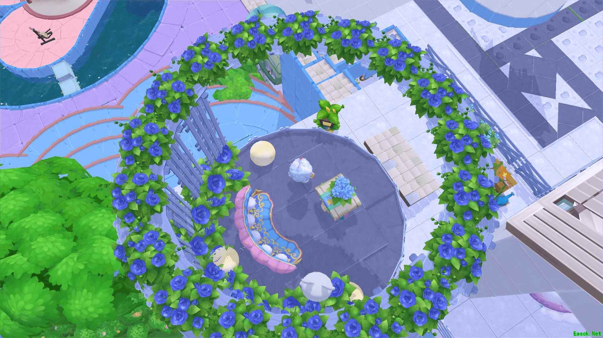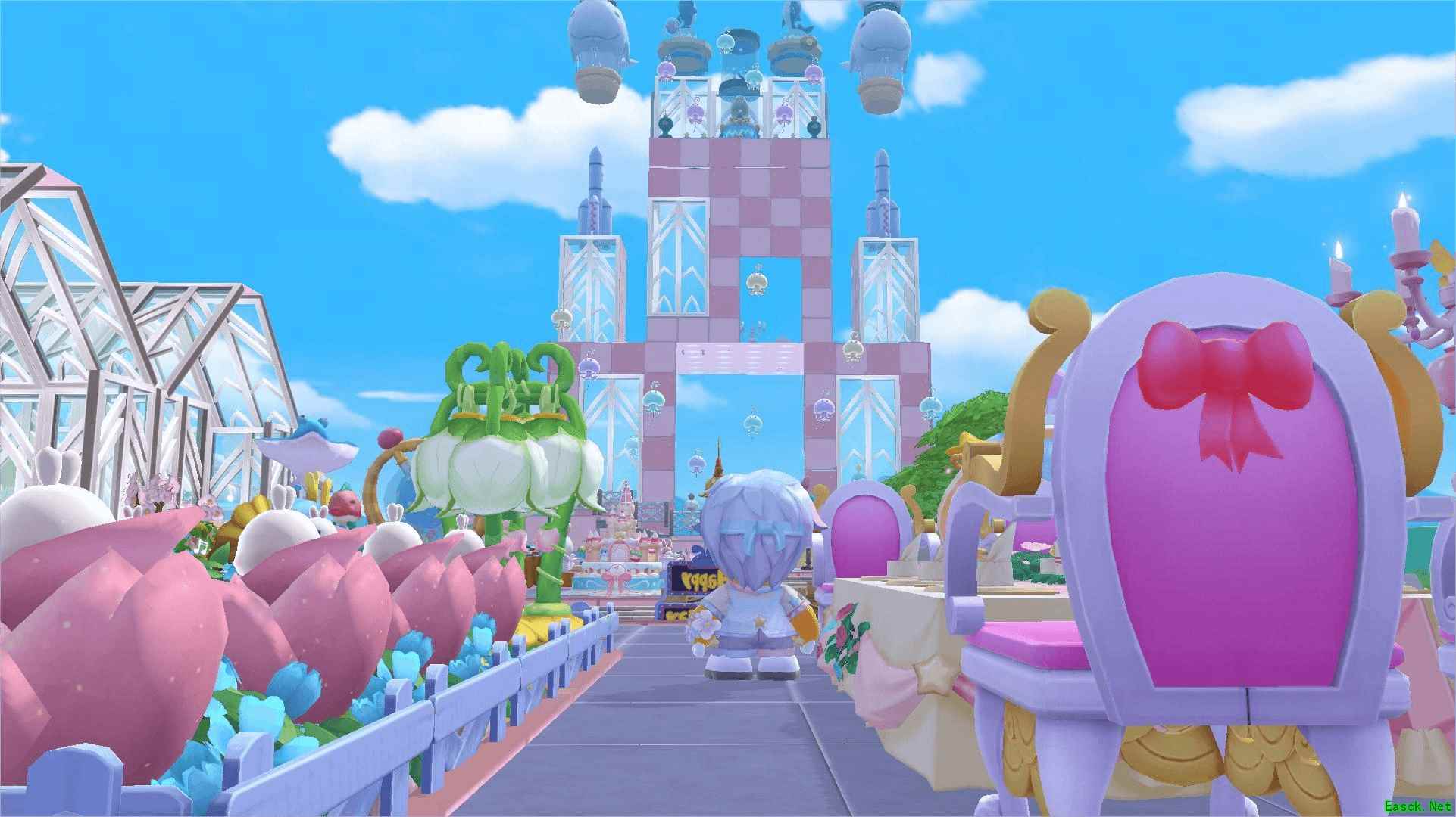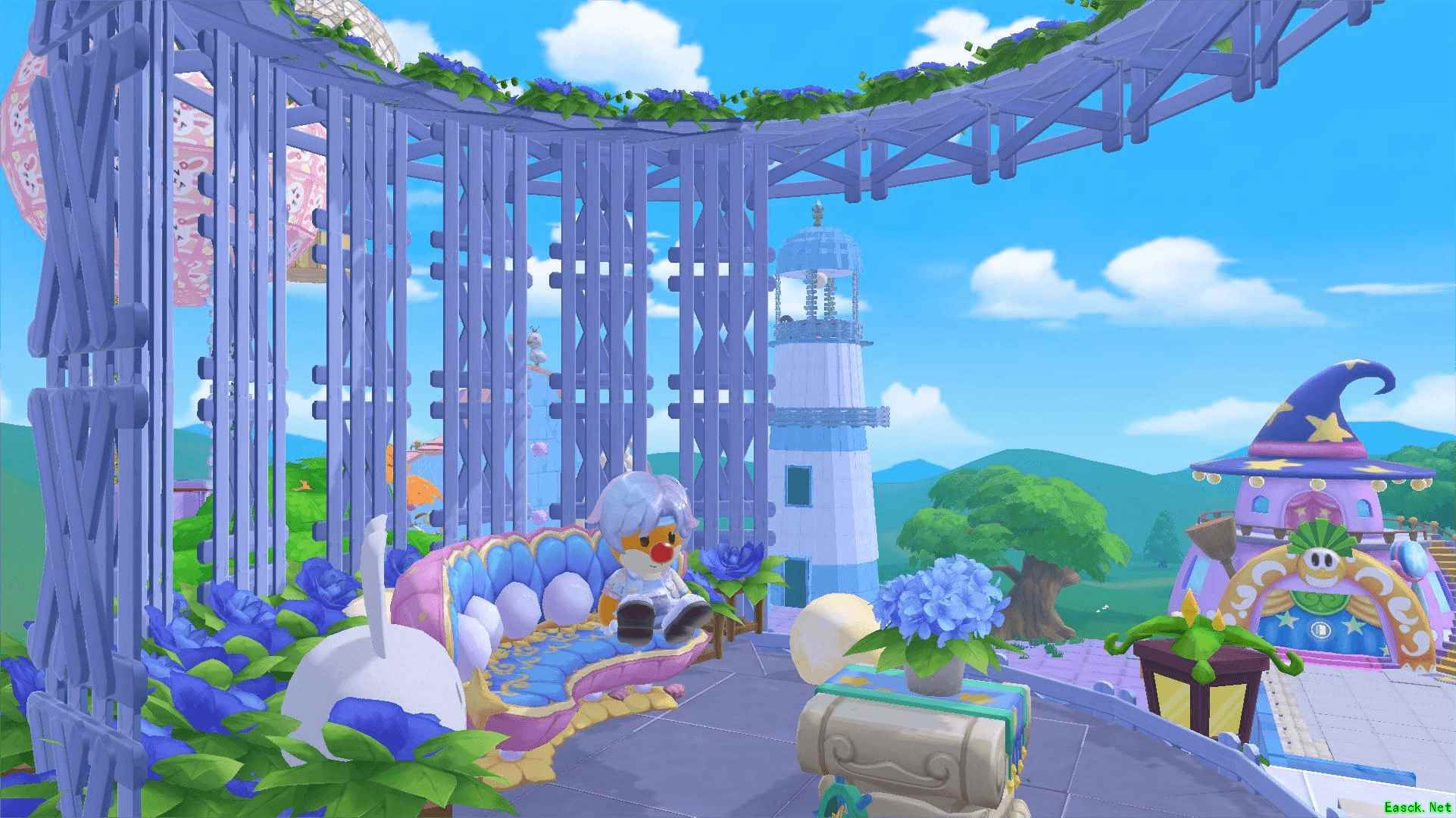 到处都是粉色的甜美气息,我已经迷醉在其中了呢~ 2.蓝色梦幻城堡 庄园里除了有甜粉童话城堡,还有渠道服@雀斑女孩的蓝色梦幻城堡。 整个城堡的设计简洁大气,主色调为蓝色,除了城堡主体,不远处还有一座同色系旋梯高塔。 顺着城堡的蓝色阶梯一路向上,来到城堡上方的露台,纵览家园风光。