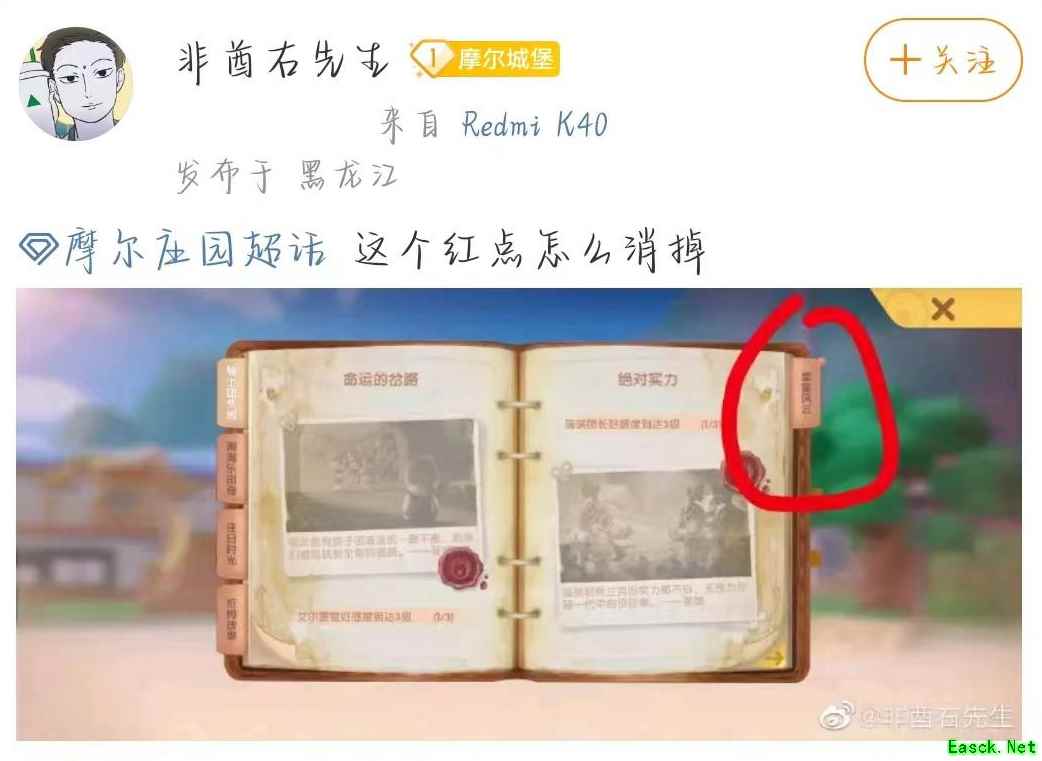 我们整理了七种庄园“侠”摩行为,还给它们取了一些非常有“侠气”的名字~ 快来看看以下七种各有千秋的“侠”摩行为,你都做过/遇到过几种呢? (以下截图均来源微博,出处见图片内容) 1. 红点清除侠 在庄园里有着这样一群摩,他们每天来到庄园的第一件事甚至是唯一的工作就是仔细排查所有的“红点区”,把消灭红点当作摩生的第一要义。