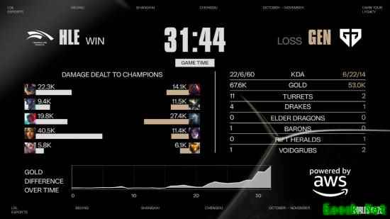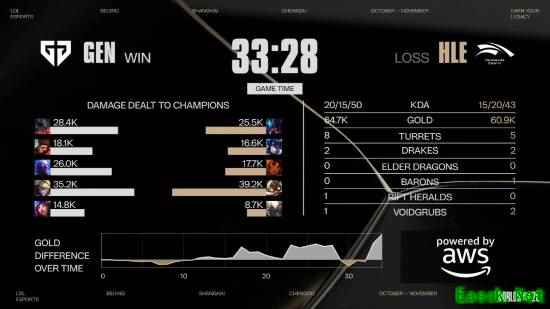 2025全球总决赛淘汰赛1/4决赛第一日,最终GEN 3:1 战胜HLE,挺进四强。