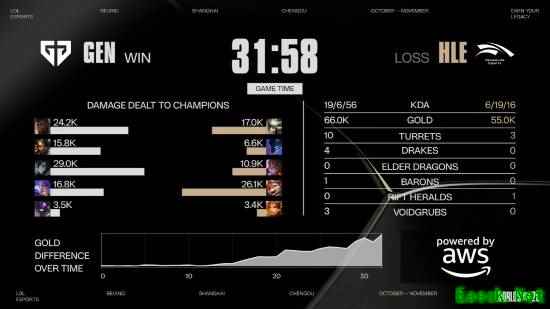 31分钟,Duro阿利斯塔率先击败阿萝拉,Ruler芸阿娜拿下双杀,GEN完成一换五,顺势推平基地,拿下胜利。