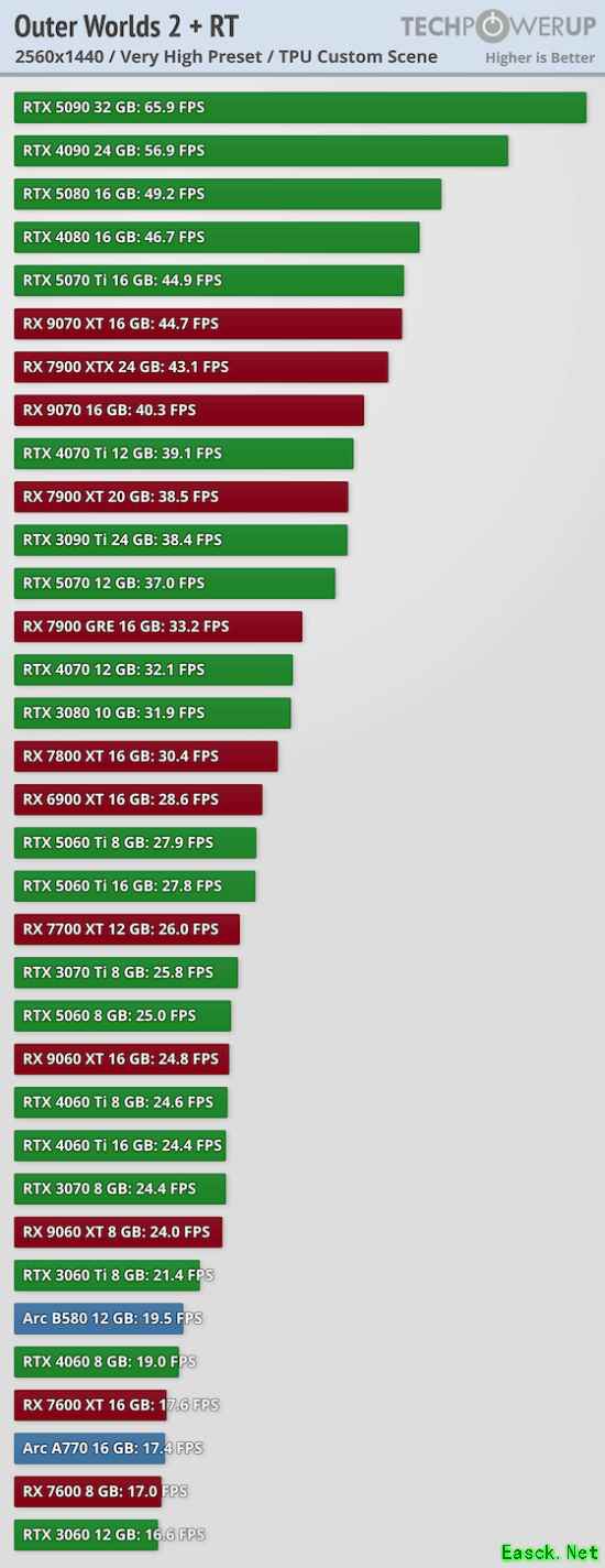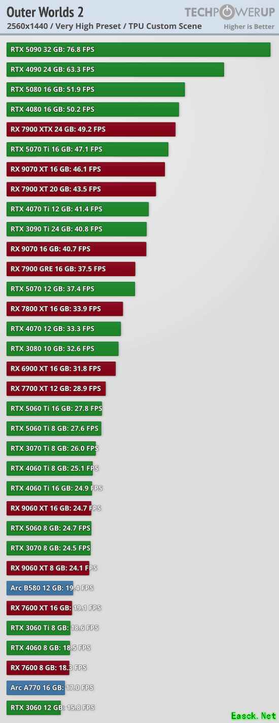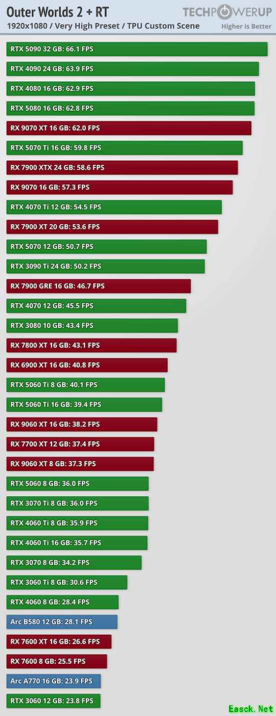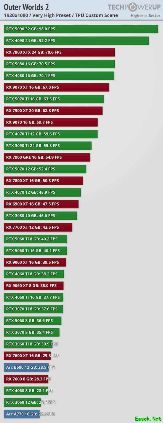 外媒techpowerup公布了PC版《天外世界2》多个显卡的性能天梯图。