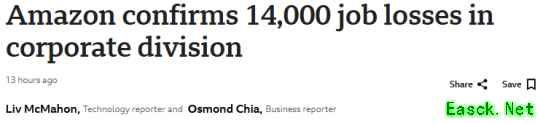 据BBC报道,电商巨头亚马逊将计划大规模裁员1.4万人,波及旗下多个事业部门,其中的游戏部门也会大受削减,正在运营中的网游《新世界》后续开发也将取消。