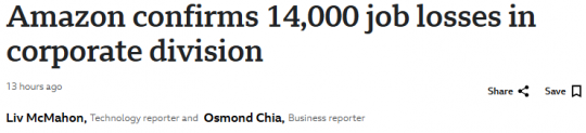 据BBC报道,电商巨头亚马逊将计划大规模裁员1.4万人,波及旗下多个事业部门,其中的游戏部门也会大受削减,正在运营中的网游《新世界》后续开发也将取消。