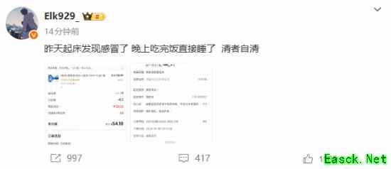 今日,BLG下路Elk发微博回应了此事,表示自己:“昨天起床发现感冒了,晚上吃完饭直接睡了,清者自清。”并附上了买药的订单截图。