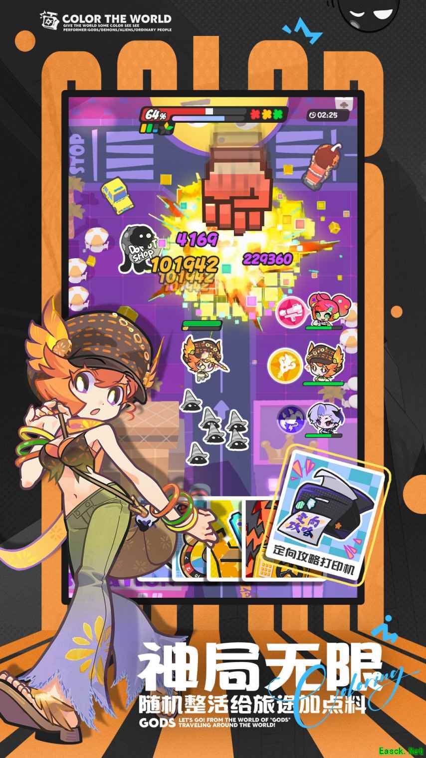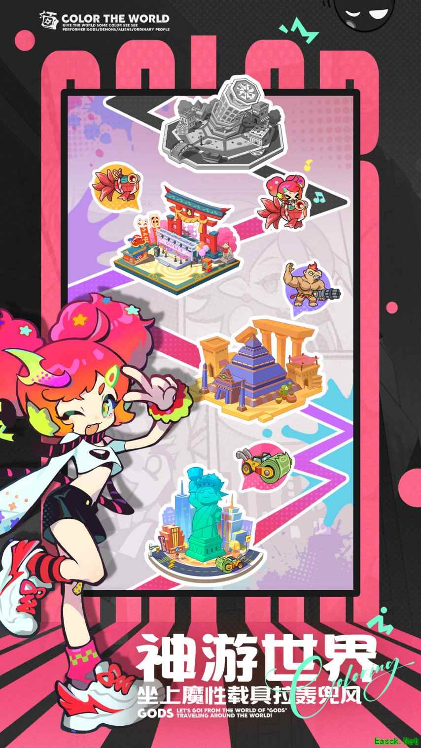 放肆染色,指涂一乐。如果你想在碎片时间收获轻松有趣、搞怪无厘头的体验,就来一起和神明娘放肆染色,顺便拯救世界吧!
