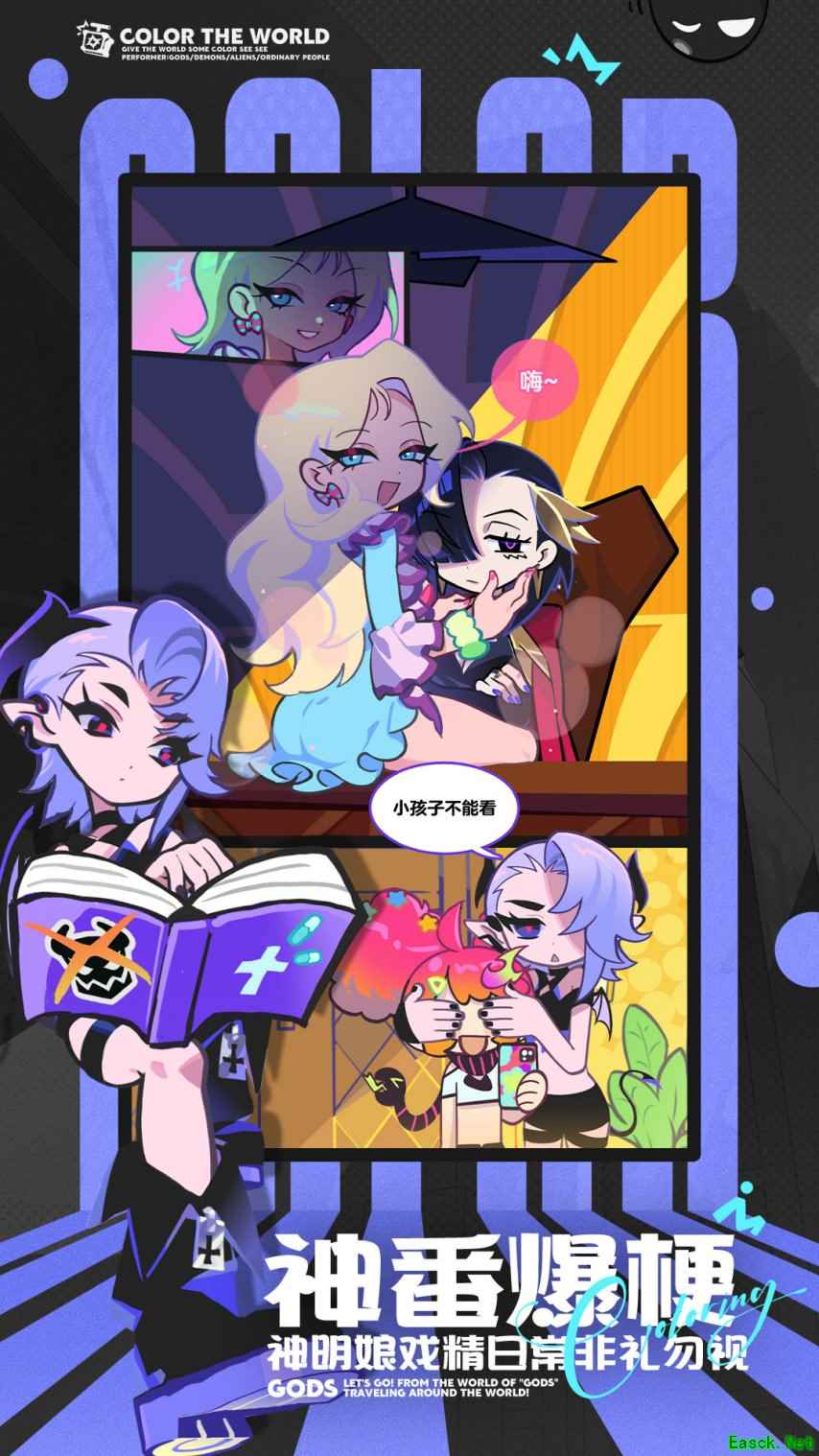 北欧主神化身证券大佬,与某位“正直的”治安官发生着不可告人的故事;捣蛋的诡计之神在金字塔中引发着一场又一场的爆炸;霓虹主神竟是少女爱豆的狂热粉丝……谁说拯救世界一定要严肃?剧情全程漫画式展开,跟着“染色小分队”一起冒险,一格三个梗,笑点密集到像在刷段子!