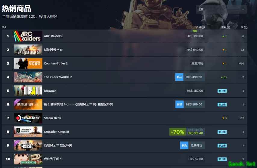 根据最新数据,截止发稿时,《ARC Raiders》已强势登顶Steam全球热销榜,力压《天外世界2》、《战地6》等年度大作,甚至超越了常年霸榜的《CS2》,展现出极高的市场热度与玩家期待。