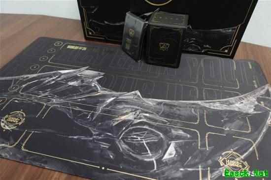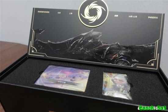 二层中包含一个卡牌收纳包,一整包的空白卡套,三张空白卡牌和三张限定小战场卡,以及一张印刷精美的游戏牌垫。
