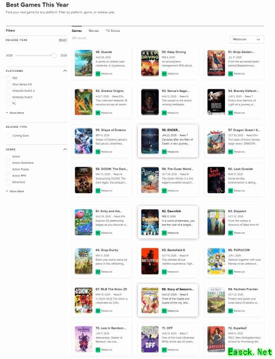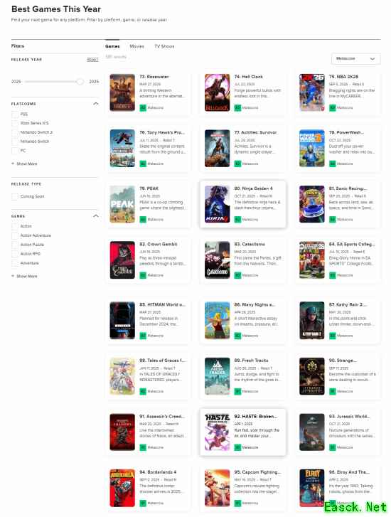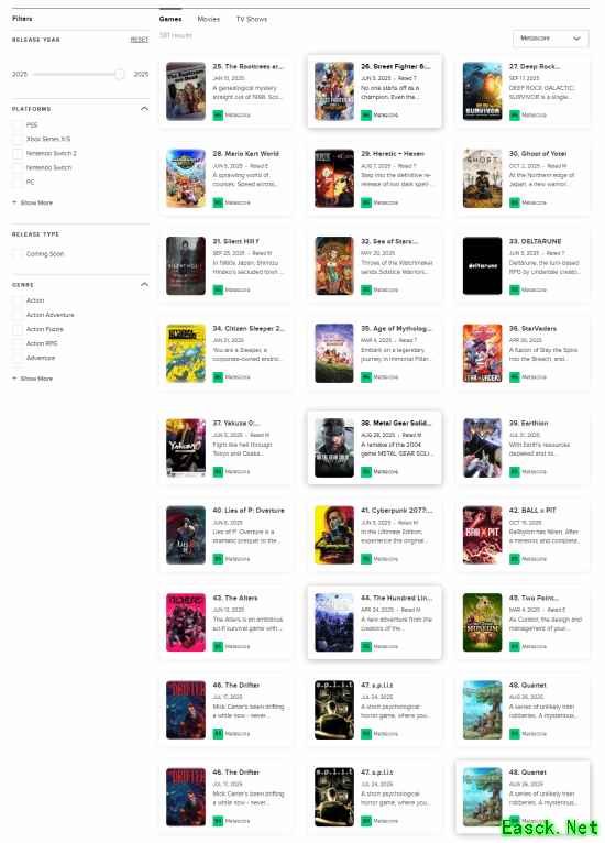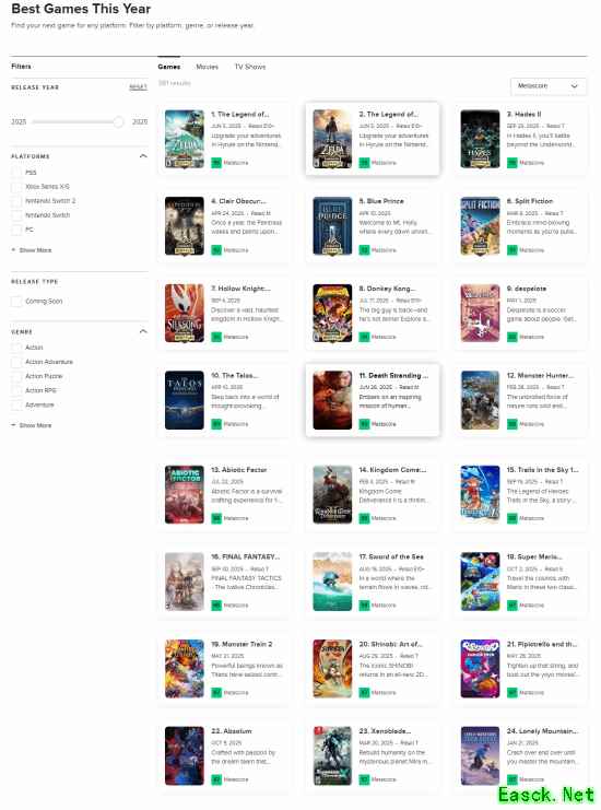 根据Metacritic官网的数据,截至目前2025年评分最高的50款游戏中,有16款游戏在此前就以某种形式推出过。也就是说,今年评分最高的游戏中,有32%并非全新作品。