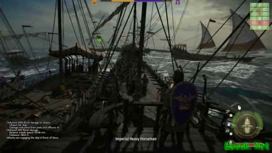资料片将新增一个“自定义海战模式”(Custom Naval Battles),可以立即创建并指挥舰队,在河流、海岸或外海地图上展开战斗。该模式非常适合测试战术、实验舰船配置,或直接跳入激烈战斗,而无需推进战役进程。海战系统灵感来源于中世纪历史战役,玩家需要掌握风与水的物理特性。登船作战、撞击敌舰,或通过击断敌方桨叶、击沉船体、撕裂船帆等方式削弱敌人,都是可行战术。